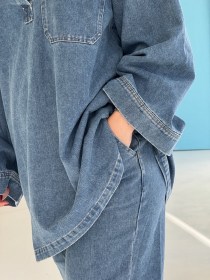 Ensemble en jean décontracté et élégant, parfait pour un look moderne et confortable. La veste ample avec poches frontales apporte une touche casual chic, tandis que le pantalon large assure une liberté de mouvement et un style résolument tendance. Ce duo denim est idéal pour toutes les saisons, que ce soit pour une sortie entre amis Associez-le avec des baskets blanches pour un style urbain ou des talons pour une allure sophistiquée. Détails : • Veste en jean ample avec poches frontales • Pantalon large en jean • Couleur : Bleu denim • Taille unique • Matière : 100% coton pour un confort optimal Conseils de style : Portez cet ensemble avec des accessoires minimalistes pour un look équilibré et tendance.